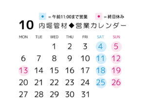 10月の営業カレンダー